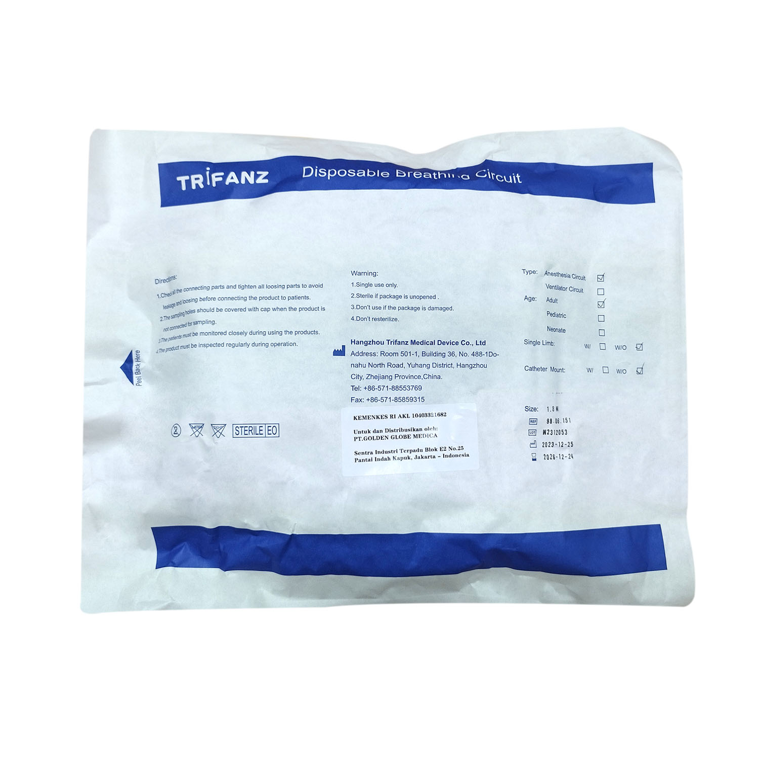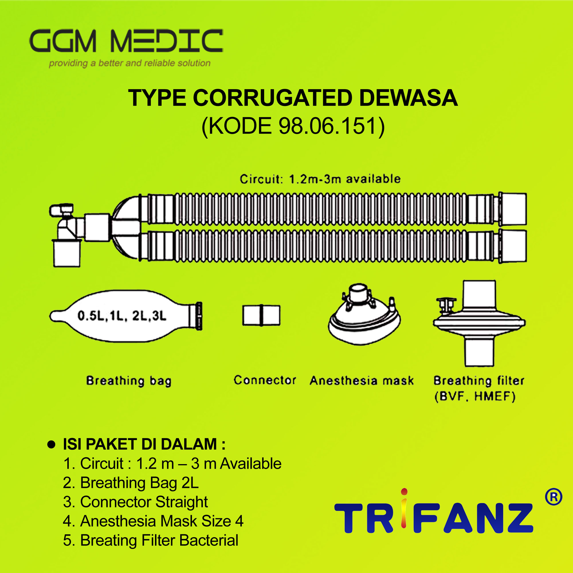 TRIFANZ – Breathing Circuit Anesthesia TYPE CORRUGATED DEWASA / ADULT